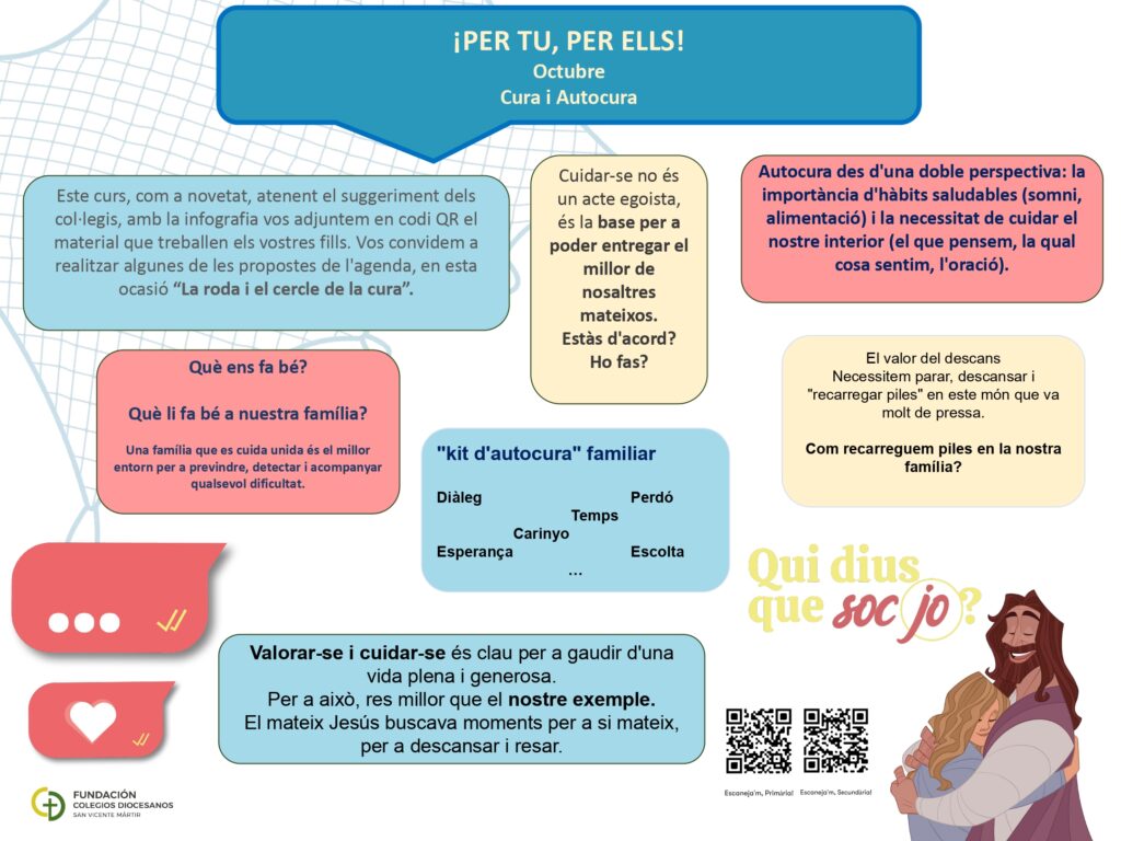 Os invitamos a leer y compartir en familia la infografía del mes de octubre, dentro de nuestro proyecto “¡POR TI, POR ELLOS!”: “Cura i Autocura”.